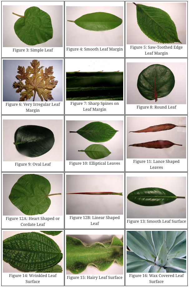 The edge of the leaf blade is called the leaf blade margin. There are many different types of leaf margins. A few examples include: Smooth (Figure 4), Saw-Toothed (serrate—Figure 5), very Irregular (Figure 6), and even Armed with sharp spines (Figure 7).